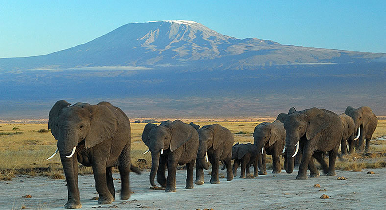 Amboseli are the plains below Mt. Kilimanjaro. The waters from melted snow drain down the mountain under lava flows and surface in Amboseli, creating a green belt of swampland amidst dusty plains. Here, hippo, elephant and bird life can be seen against the backdrop of the magnificent snow-capped mountain.